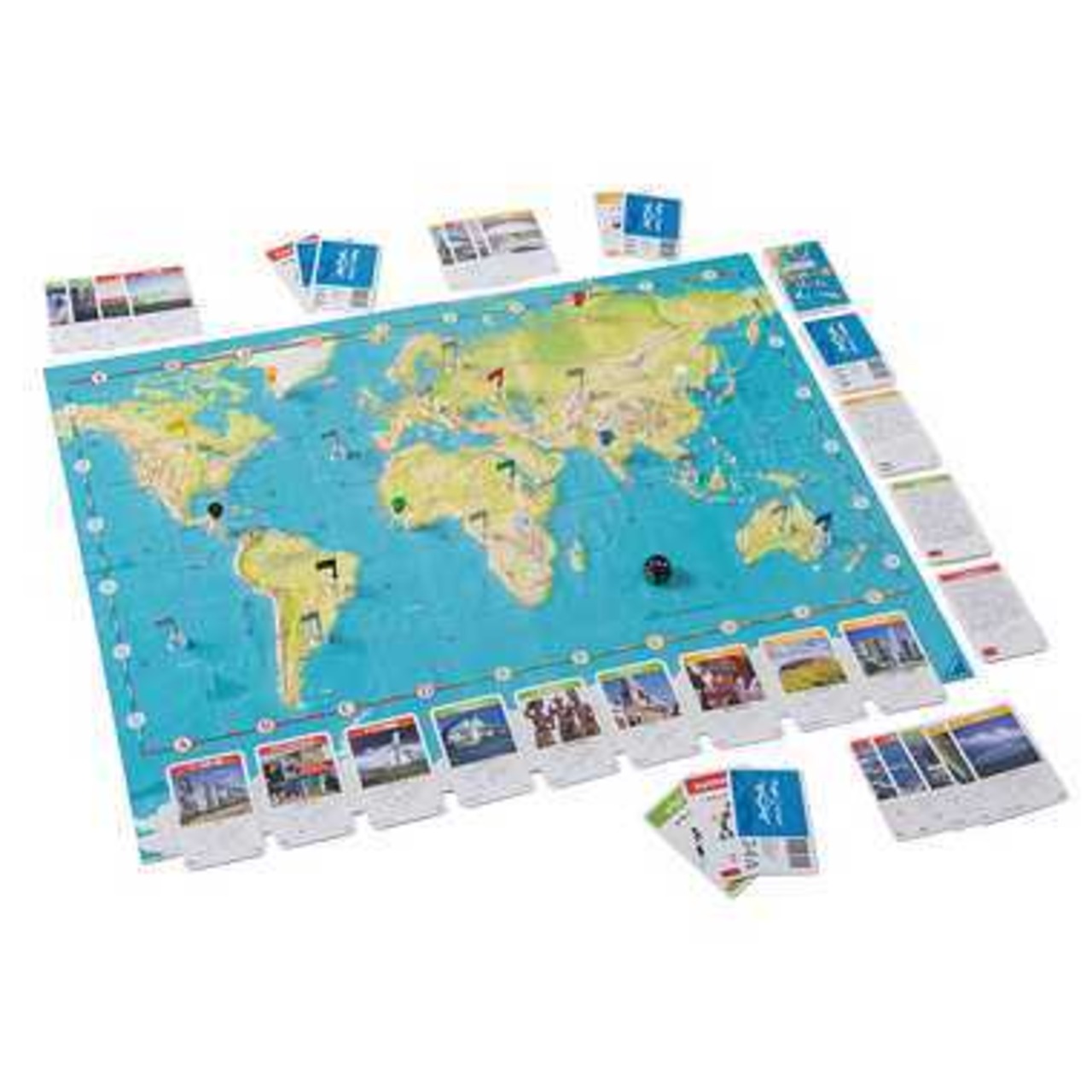 世界を旅しながら都市の名前や位置関係が覚えられる。サイコロの運とアクションカードをうまく利用して目的地を多く訪れ、一番最初に世界を一周しよう。